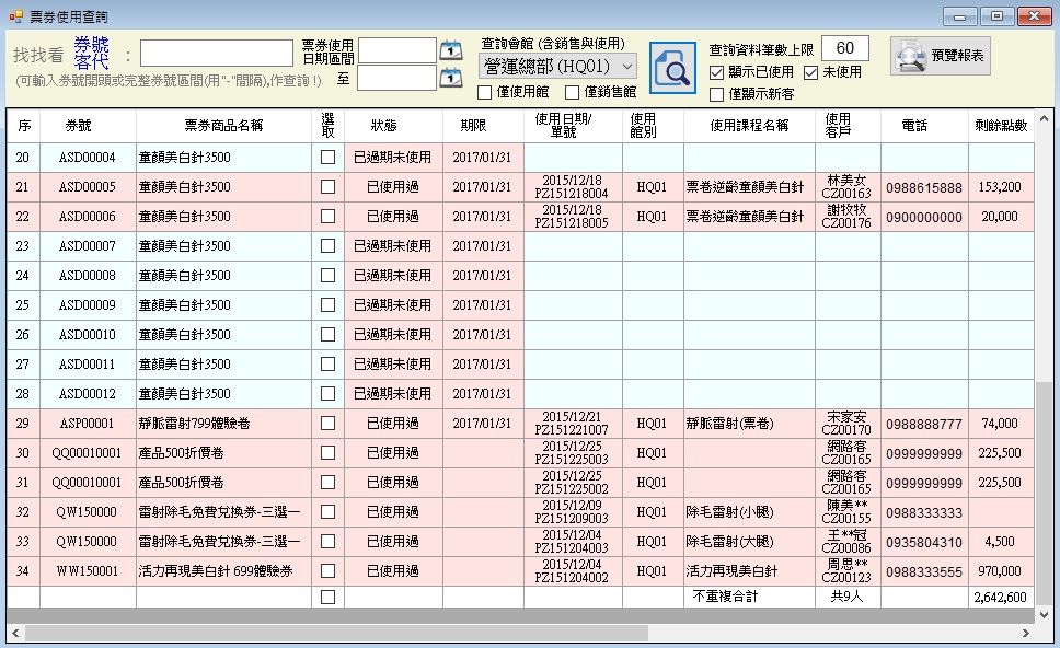 凡使用必留下痕跡-清楚紀錄客戶票券使用狀況