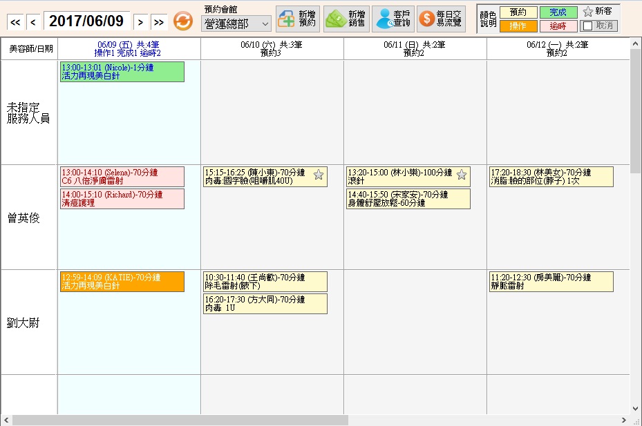 以不同顏色標示不同預約狀態,忙碌狀況一目了然